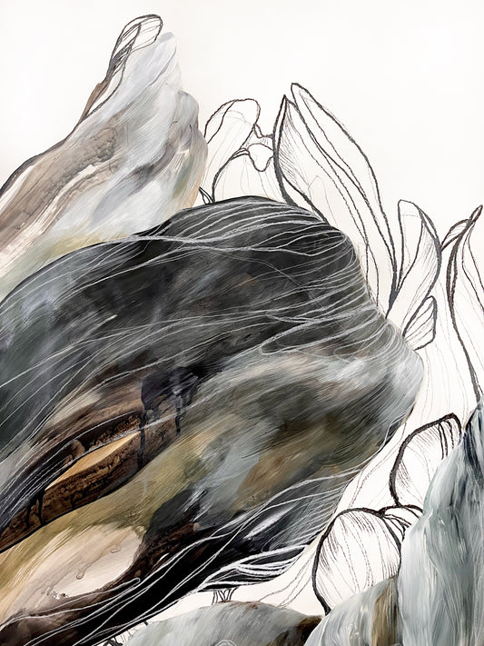 Through delicate line-work, Sarah's floral subject emerges as a fragile, fleeting expression of life's ephemerality. Each artwork reveals an inherent balance, reflecting the subtle interplay between strength and vulnerability.