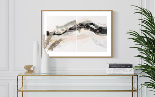 “The diptych we have by Sarah is the centre piece of our bedroom. The peaceful organic flow of “Sailing Through Kelp” gives the room a calm feel and really sets the tone for our refuge.”